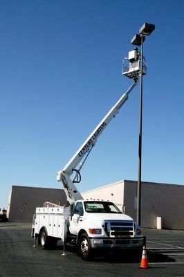 By using our 52-foot bucket truck, the team at Dial One Electrical Services can access almost any parking lot light, sports complex light or company sign. Give us a call today if you need electrical service that can only be accessed by a bucket truck.